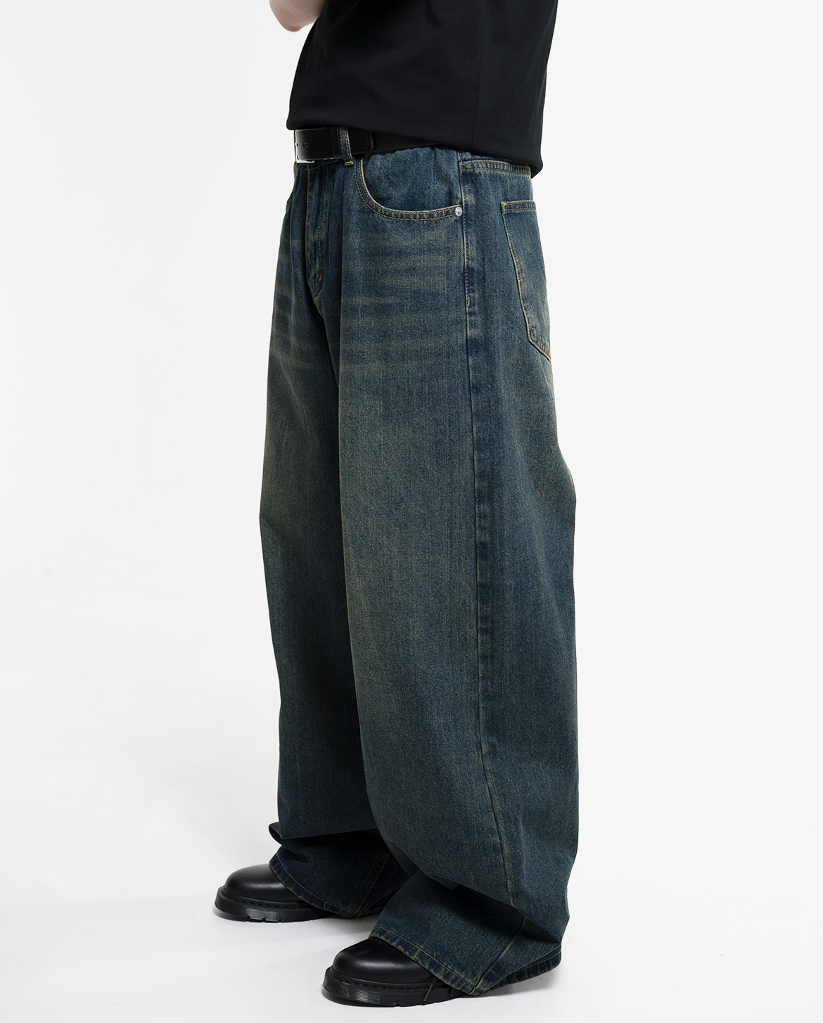 腰回りから裾にかけて大胆にワイドに広がるバギーシルエットが、抜け感とストリートのムードを演出。