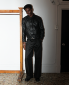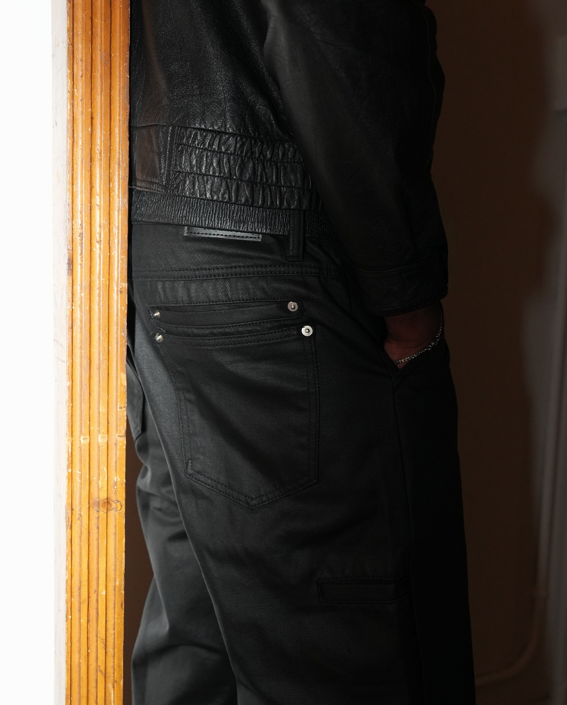 【商品名:Stacked Oil Coating Wide-Leg Pants】
