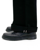 背面に配されたダブルバックポケットは、ギミック性と実用性を兼ね備え、携帯や小物を安定して収納できる設計となっている。