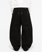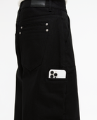 A pair of black 14 oz raw denim jeans that fuse functionality with street style.