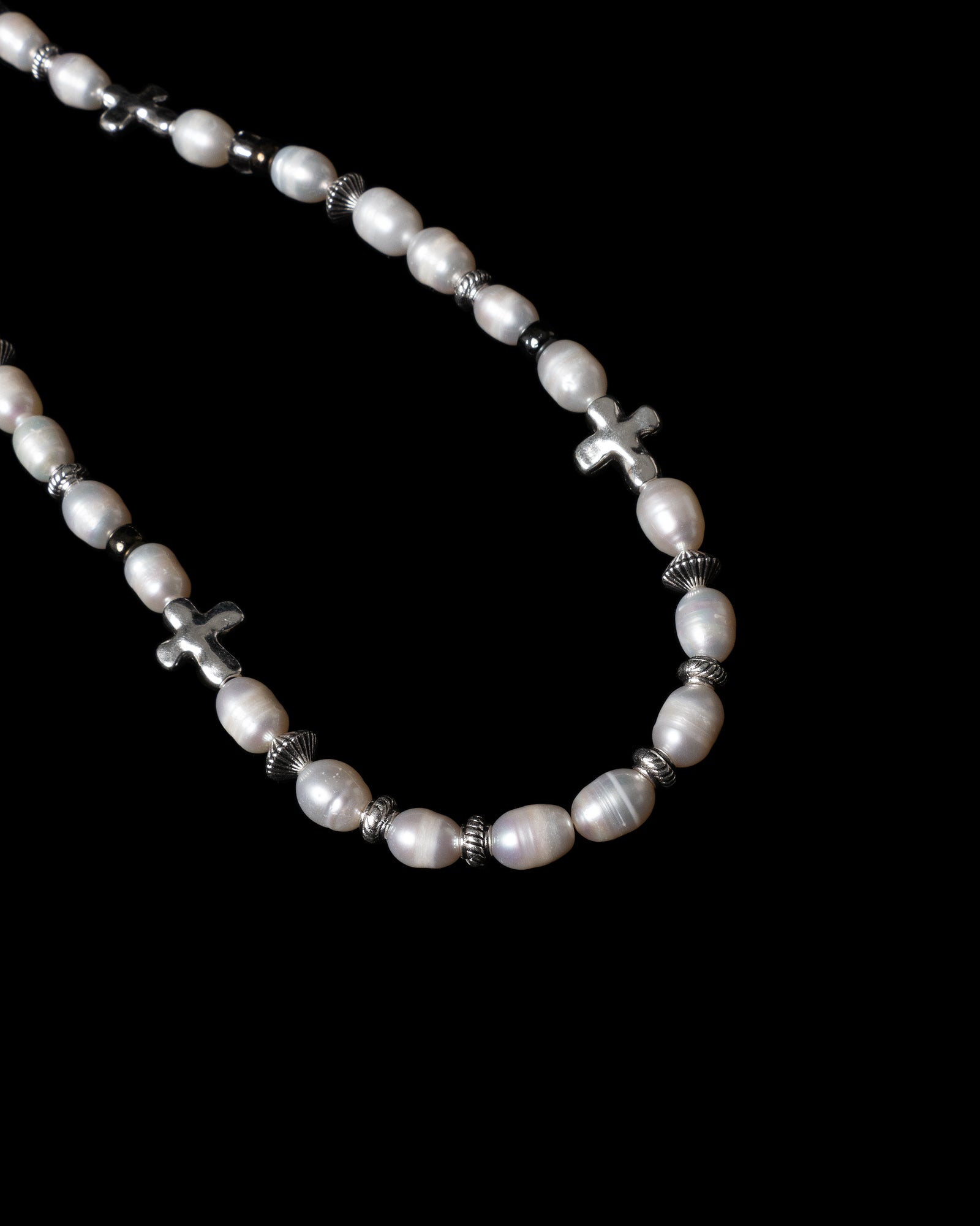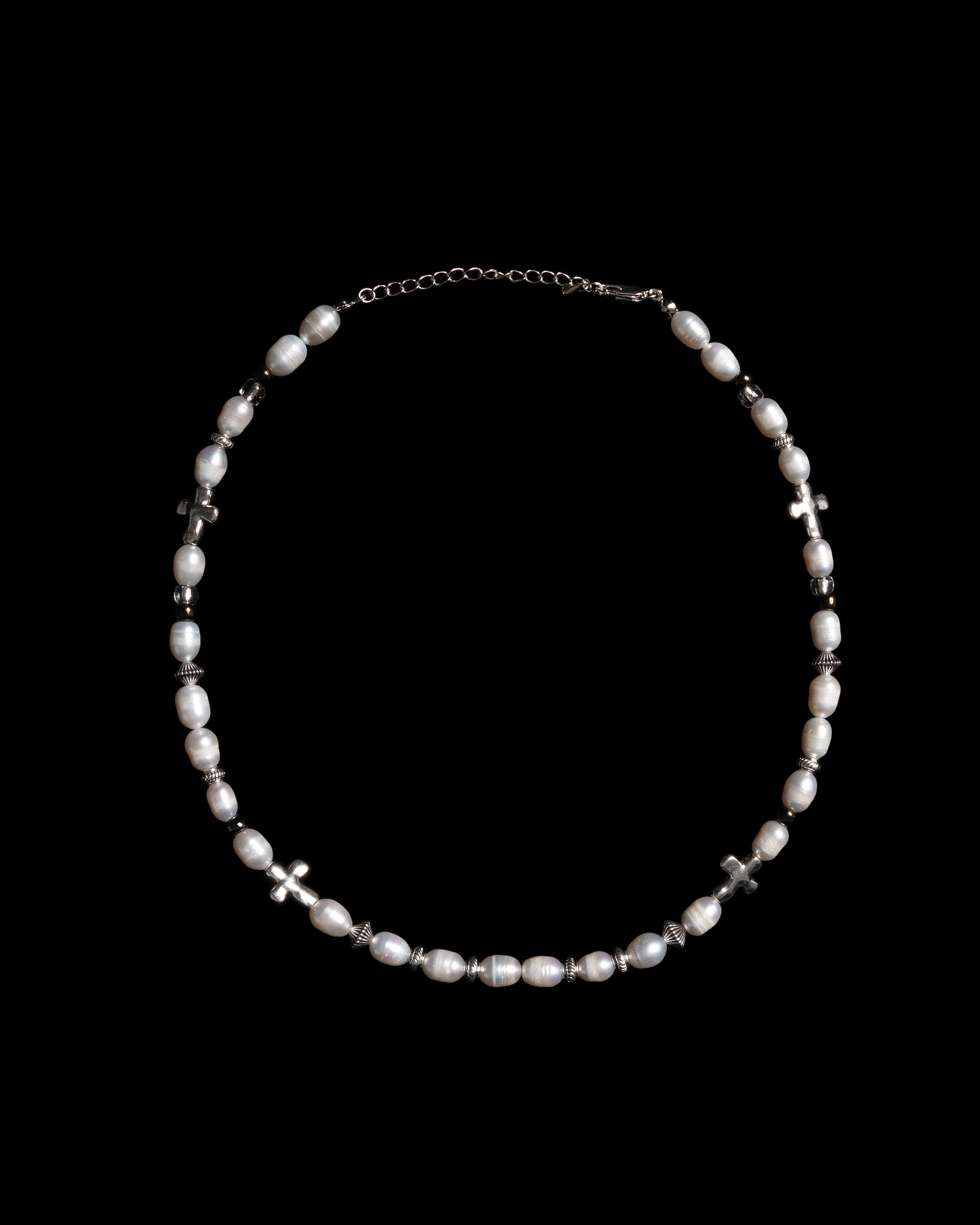 世界各地で集めたbeadsと本真珠(フレッシュパール)を繋ぎ合わせた作品。